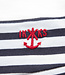 New season, new sailor-stripe top. The cut-outs on the front wake up the graphic style and the red embroidery confirms the seaside look.