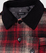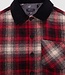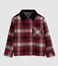 The essential plaid shirt gets a modern update. With a black corduroy collar. With a trio of dark red, beige and black. A partial jacquard lining with skull and crossbones motif.
