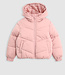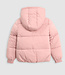 - Bottom: pink down jacket, stand-up collar, hood, long sleeves