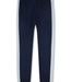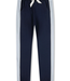 Sporty dark blue pants by Sanetta for girls with wide side inserts in a contrasting color.
