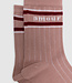 - One pink ribbed pair, jacquard message and ankle stripes