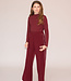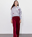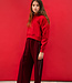 The perfect way to slim your silhouette? Wide-leg pants, highlighted with contrasting bias on the sides and stitched seams along the legs. Bordeaux is this season's new trend.